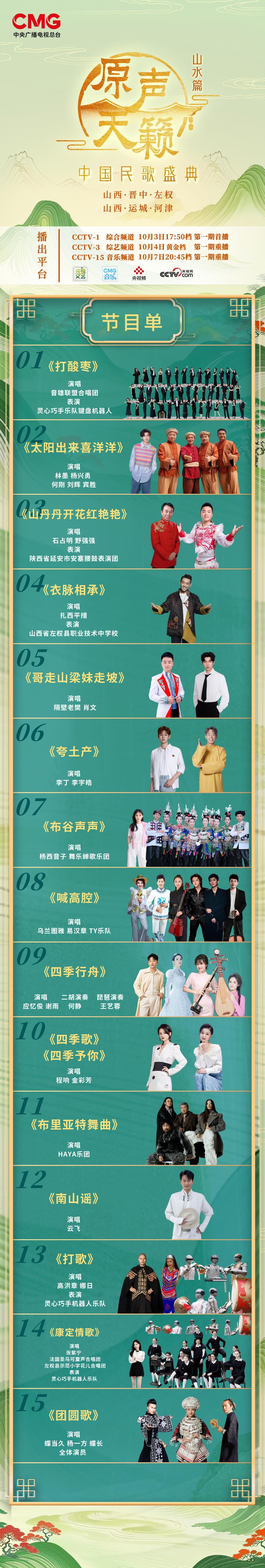 山区和河流之间引起共鸣的不仅是一首歌,而且是文化遗产和激情的冲突。 10月3日,CCTV-3综艺节目频道的PRIMO时间表的17:50时间表在10月4日的PRIMO时间表,10月7日的CCTV-15音乐频道的20:45时间表,CCTV文献,CCMG音乐,CCTV音乐,CCTV视频,CCTV.com,CCTV.com和其他平台都在听时间。中介,倾听和聆听旋律。 “天堂的声音 - 中国民歌节(景观章节)”即将播放开场音乐!